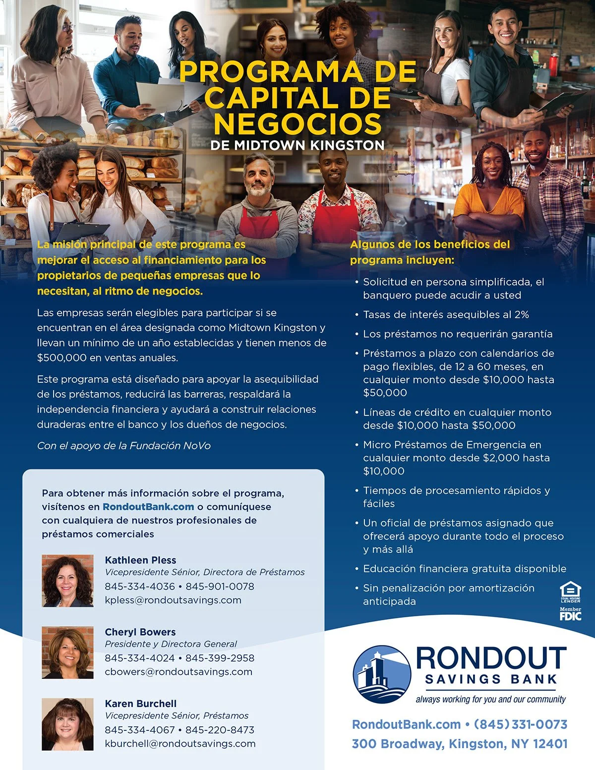 Rondout Savings Bank ha emprendido un programa para mejorar el acceso a la financiación de les propietaries de pequeñas empresas que lo necesiten, a la velocidad de negocios.